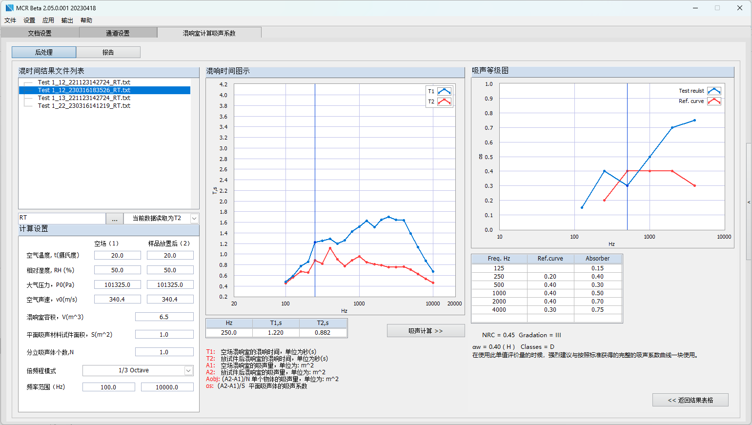 MCR-ABSR模塊為混響時間數據的后處理模塊,用于混響室法測量材料…